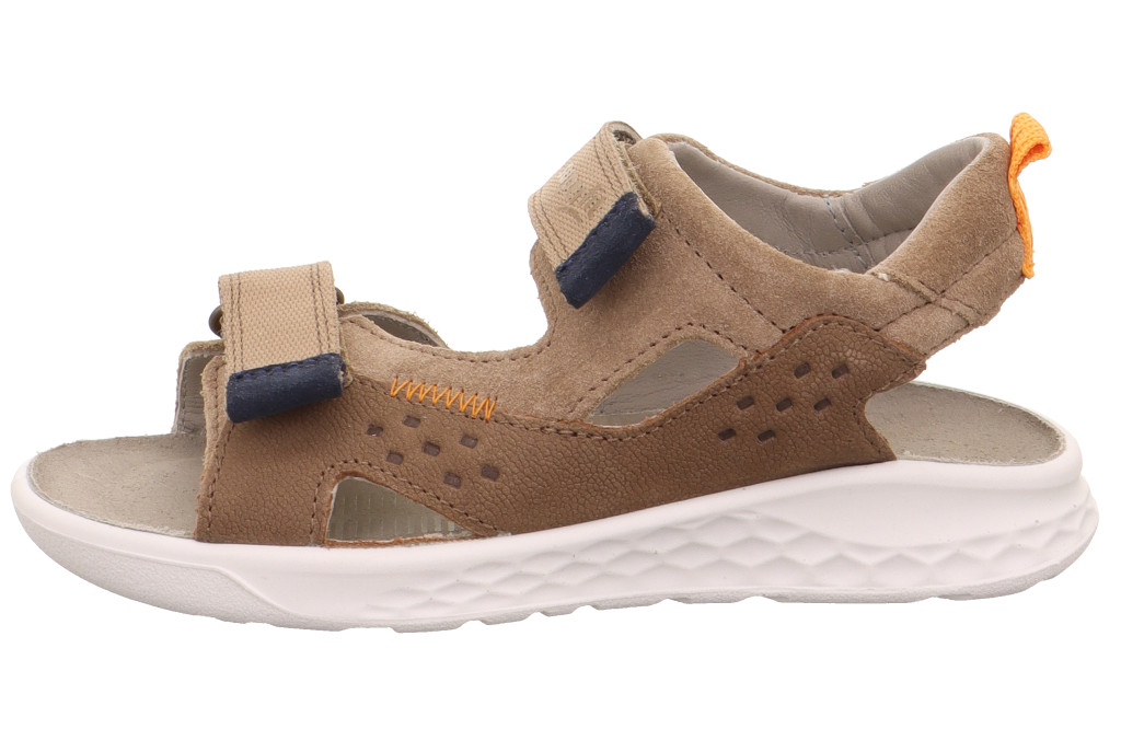 A LAGOON MIDI szandál remek színeivel és stílusos kialakításával minden korosztály kedvence lehet. Az elegáns dombornyomás, a cikkcakkos részletek és a kontrasztos tépőzárak modern megjelenést kölcsönöznek neki. A puha, mégis tartós nubuk és velúr anyagból készült szandál párnázott talpbetéttel biztosítja a gondtalan nyári kényelmet. Barna-kék-narancs színkombináció.